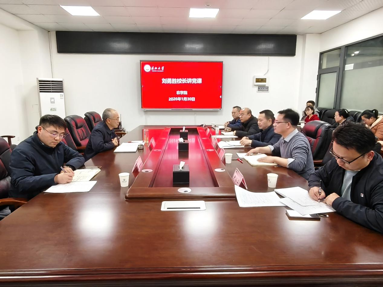 (通訊員 劉曉雪) 2026年1月30日下午,校長劉勇勝參加農(nóng)學(xué)院黨委理論學(xué)習(xí)中心組1月集體學(xué)習(xí)會并講授專題黨課。會議在農(nóng)科大樓3064會議室舉行,農(nóng)學(xué)院黨委委員、領(lǐng)導(dǎo)班子成員和機關(guān)黨支部全體黨員參加學(xué)習(xí),黨委書記周錦華主持會議。